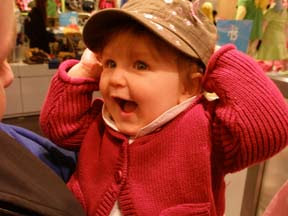 | The inside of the restaurant. Notice all the things hanging from the ceiling. They keep Emma distracted through most of the meal |